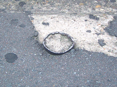 だれがこんな大きなモノをおいたのでしょうか。 但馬トンネル入り口 と、いうか、トンネルの高さ制限のガードです。 高さ制限4.5mがどうやらこの巨大ストックのガードの高さのようです。 幸いにして、このストックに大きな傷も見