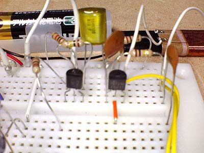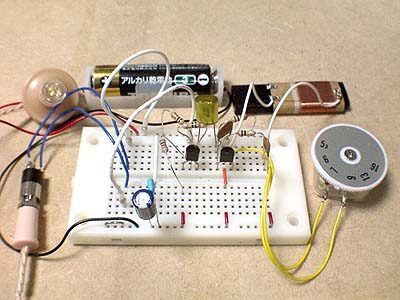 ブレッドボード上で回路の動作を確認中