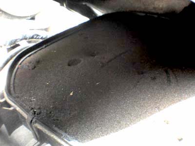 このクリーナーエレメントはスポンジなのである程度の劣化は予想していたのですが、もう、グズグズの状態で、スポンジ特有の弾性もなにもあった物ではありません。指で押さえるとそのまま凹んで跡が残り戻りません。ちょっとつまむだけでぼろぼろと崩れてきてしまい、殆どお役に立っていない状態のようです。