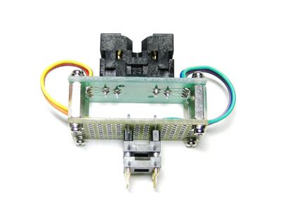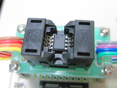 ちょっと判りにくいですが、ソケット上に置かれたSOPのピンの上からコンタクトが押さえ込むような状態で接続されます。