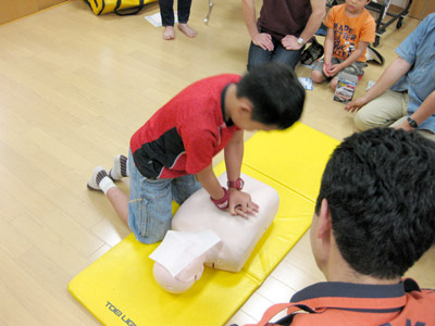 普通救命講習は主として成人(8歳以上)を対象とした応急手当、止血法や心肺蘇生法および自動体外式除細動器(AED)をの使用法などの習得を目的として行われます。