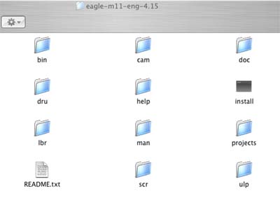 インストールをするのが久々だった事もあり、自分でも忘れてハマったため(笑)覚え書きの意味も込めてインストール手順をここに書き記す事にしました。まだMacOS XでEAGLEを使った事の無い人の参考になれば幸いです。EALGEのファイルにあるREADME.TXTを読めば判る事なのですが、読まずにインストールするとハマります(涙)。