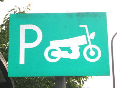 街中では取締りを厳しくしている割に駐車場が無いので困るのですが、コインパーキングの二輪専用コーナーの案内看板の絵です。