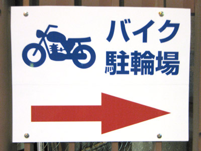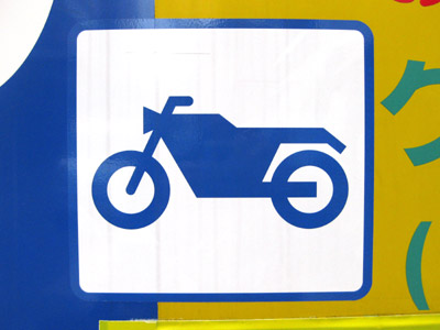 一番下のマークは(財)駐車場整備推進機構(JPO)が標準化した「自動二輪車標準マーク」ですね。ちなみにスクーターを模した原付を表すマークもあります。