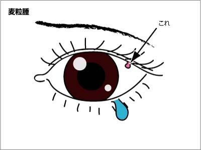 まぶたの内側やふちに細菌が感染して炎症をおこしてポチッと腫れ物ができ、ひどい場合には膿がたまって大変痛い思いをします。医学的には麦粒腫というちゃんとした病名があるのですが、これは関西では「めばちこ」といいます。