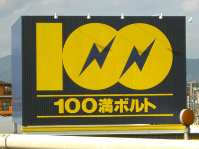 山陰地方に強い店舗展開をしている電器店の屋号なのですが、電気がらみもあり、100万V(ボルト)に掛けていることは間違い無さそうです。