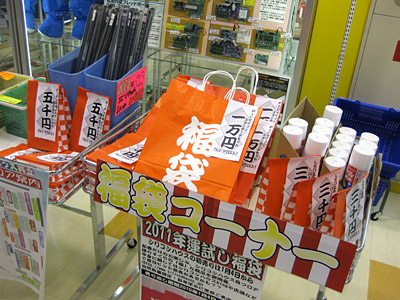 で、年初恒例の福袋が販売されていました。各フロアごとの商品に関連した詰め合わせセットとなっていますが、今年は強烈な金額の福袋も登場しています。