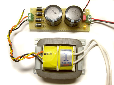 スイッチング型アダプタなどで電源供給する作例が多く見受けられたのですが、スイッチング電源特有のコモンモードノイズが気になることもあり、ここはあえて非安定化電源(笑)としました。