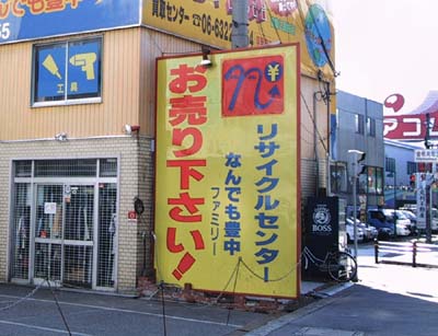 2005年11月1日 なんぎ ちょっとマズイかも あ、このマークどこかで見た事がある?! リサイクルセンター「なんでも豊中」 リサイクルという事ではねて戻るイメージを使いたかったのでしょうが、某ハンバーガーショップのマークにそっくりです。店舗名もさることながらやはりどうみても「アノ」ロゴマークそっくりの看板が目につきます。 いや〜、何度見てもマズい気がするんですよね。 思わずドライブスルーが無いか見てしまいます。 看板の絵が変わっている などと思っているとやはり横車が入ったのか、看板のマークが変更されていました。 恐るべし外資系ファーストフードショップ。