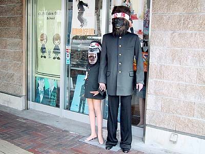 男子学生のマネキンはどうも人間臭いし、なんか本格的なマスクみたいで、女学生マネキン?はよく見ると通常のガクランを着ているし、異様な風景でした。