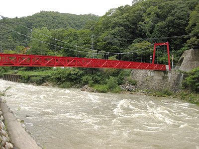 以前にご紹介したときは、台風による猪名川の増水で氾濫、大型の岩が流れ下りてきたことで損壊・流失してしまったことで、新しく架け替えられた武田尾橋付近の状況です。