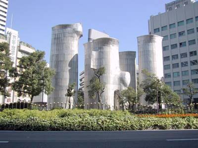 曾根崎警察、阪急百貨店、阪神百貨店に囲まれたステンレス製の異様なオブジェ。