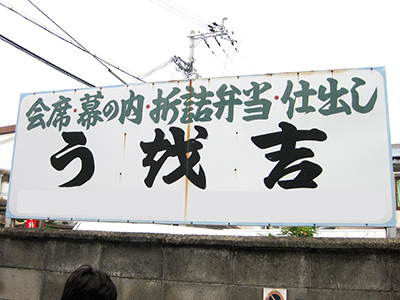 看板の「お」の文字は「於」を崩した変体かなです。
