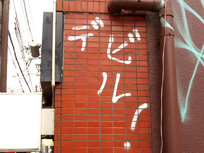 しかしながら、どうもこのスプレー描きはこのビルのテナント店舗によるものではないかと考えています。なにせ一階に入っているのはバキバキにエッジの効いたテナントでしたので。もし違っていたとしたら申し訳ありません。