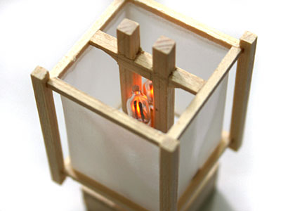 今回は工作の楽しみを増すために(笑)行灯も自作です。100円ショップで見たものはどうも風情がありませんので、やっぱり気に入るように自分で作ってしまいました。
