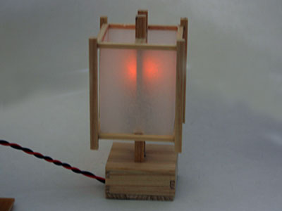 細い模型用の角材を切って格子組したり、台座を組んだりと木工工作も久々でなかなかこちらも楽しめました。幸いにして糸鋸盤がありましたので、工作に励んでいたわけです。部品表には行灯・雪洞(ぼんぼり)を民芸品や人形用を利用する以外に自作すると書かれていましたので思わず自作してしまいました。