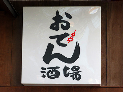 「て」の濁点部分がおでん串になっていてしかも赤い色になっているので、濁点とすぐに認識できませんでした。「おでん」ではなく「おてん」。