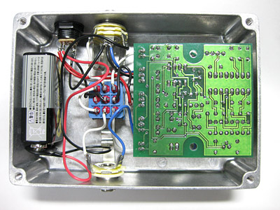 製作体験会で完成した段階でギターを持参だった方に試奏してもらいました。なかなか良いとの事。これで知人に引き渡して楽しんでもらうのに自信がつきました。ディレイタイムを調整しないと、エコーバックしている音で自分が何を弾いているのか解らなくなるのが難点かも。