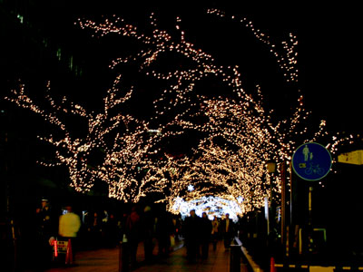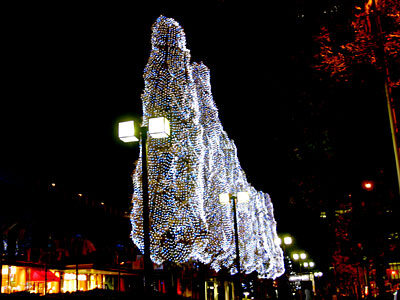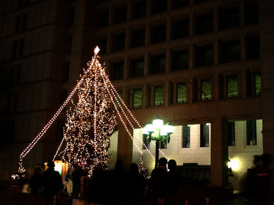かなり背の高い樹のはずだがてっぺんまで電飾されている。すごいと思う。