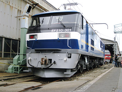 ともに現在主力運用されているEF210形電気貨物機関車(二次車)で、改修中の展示。