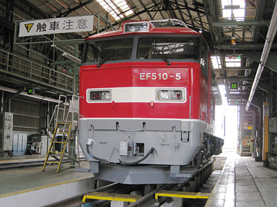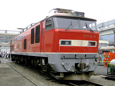 共にEF510形の0番台で量産機。EF510 6は運転台公開に、EF510 5は外れたエリアにこっそりと検査上がりのピカピカ状態で展示されていました。