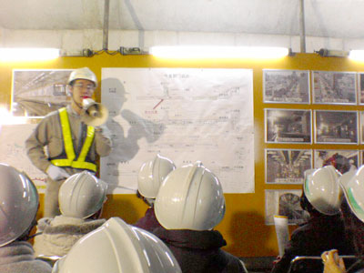 いよいよ、実際に工事中の今里駅に移り、工事中の地下鉄駅を拝見するというスリリングな体験に移ります。