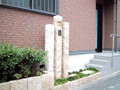 ちょっとよく見ると、「ははぁ、名前が書いてあってインターホンがあるぞ・・」てな具合で、門柱だと気付いたのですが、玄関周りの様子からすると殆どオブジェ。