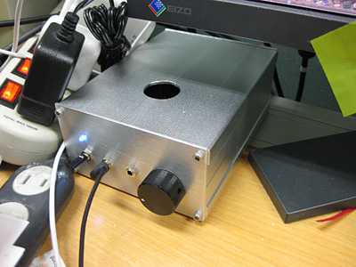 製作直後、スタイリッシュに真空管が見えるのがうふふ、な感じでほくそ笑んでいたのですが、やはり真空管の見える機器は周りが空いているのが好ましく、ごちゃごちゃ机の上に置いて運用すると意外と真空管の出っ張りが邪魔だったのです(運用の様子はこちら)。
