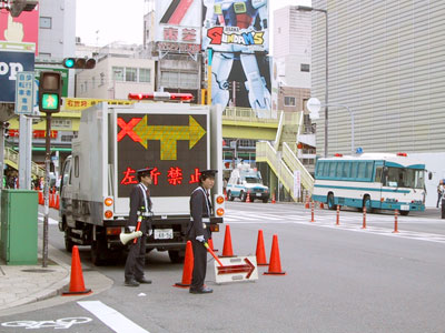 明石の花火大会の件もあってか歩道橋は通行止め
