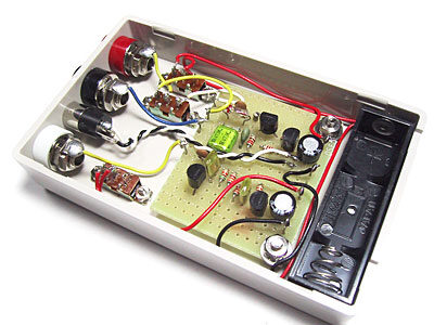 トレーサーとインジェクターは別々に電源をオン・オフできるように(左右の端にあるスイッチ)し、それぞれの電源も電池ホルダーの端子から直接に別系統で筐体内に配線し、各ブロックに電源のデカップリングのコンデンサー(100μF/6.3V+0.1μF/50V)も念のために追加しました。しかし、トレーサー側が高感度なのか、インジェクター側の電源が入るとかすかに発振音が聞こえます。