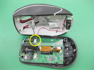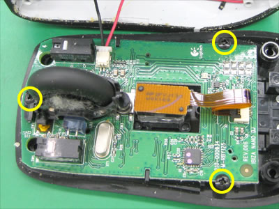 マウスの底部には基板があり、ここにマウスボタンのマイクロスイッチが実装されていますので、このマイクロスイッチを交換する事にします。