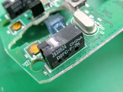 使用されているマイクロスイッチは中国製でOMRONの産業向けの型番(D2FC-F-7N)で動作負荷が0.44〜0.74Nと今回交換するD2F-01F(Typ. 0.7N)よりやや軽めです。