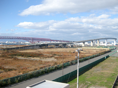 ちなみに奥の赤い橋は阪神高速道路の港大橋。