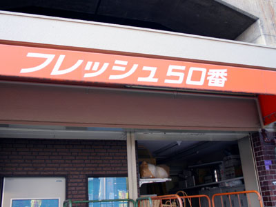 2006年4月25日 なんぎ ハーフです なぜに100でも1でもなく50? 「フルーツ50番」 百番というと居酒屋のイメージがあるかもしれません。一番とは厚顔不遜。二番は嫌だ。では三番は?四番は? と、突き進むうちに50番になったのでしょうか? しかも数字は「50番」と、アラビア数字表記で、「五十番」のように漢字表記ではありません。 この隣に姉妹店舗かなにかで似たような名前が・・・ 「フレッシュ50番」 どうしても50番が良いようです。世の中難しい。