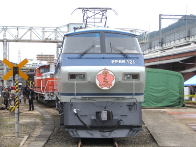 EF66 110は昨年全検できれいになったはずなのですが、貨物車両の清掃のしなさは相変わらず半端無いですね。展示車両にするのですからもう少しきれいにしてからとも思うのですが。