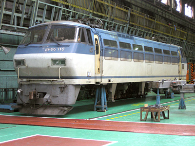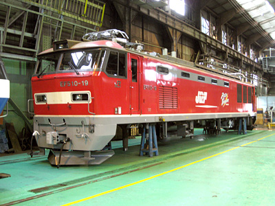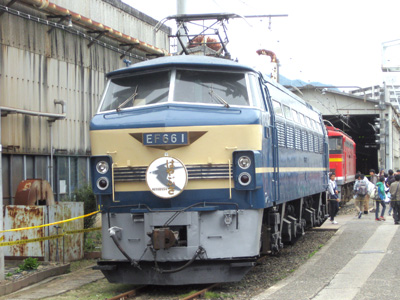 クレーン実演を行う工場内の整備中車両を見て行きます。新旧の車両が並んでいますが、EF510 19は広島車両所の運用車両ではなく、わざわざ富山からこのイベントのために持って来たようです。