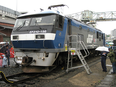 運転室公開の車両は今年はEF210でした。この時は結構な雨足だったので並んでいる人が少なく、多分40分ぐらいの列だったと思いますが、時間が勿体無いので見送りです。