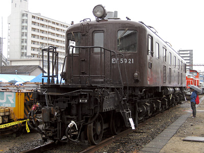 こちらも広島車両所の保存車両でありEF59 21。EF56 2を改造した車両で最後まで瀬野八で運用していた車両で貴重な車両であり、また例年の展示車両でもありますが、だんだんと劣化を感じる状態なのが辛いところ。