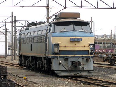 こちらは広島車両所の保存車両となっているEF66 1。何年か前に国鉄色に綺麗に塗装を変更されたのですが経年変化が目立ち始めました。屋内留置とはいえ、お化粧直しは必要そうです。