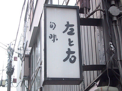 確かに「さとう」さんの経営する店かも知れません。iタウンページで調べると「さとう」の店舗名で引っかかりました。「ひだりとみぎ」と読ませるのではなく「さとう」と読ませるようです。