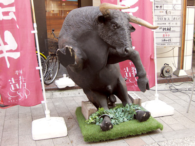 実際にこれで呼び止められるというよりも、この牛のインパクトで足を止めるか、店の方の様子伺いをするかも知れません。