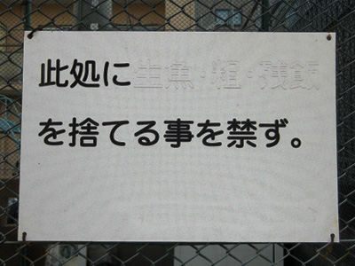 この看板も赤字部分がまっ白で抜け落ちてしまい、何を捨てるのが禁じられているのかサッパリ解りません。まるで判じ物というか大喜利というか推測する楽しみを提供してくれているとも思えません。
