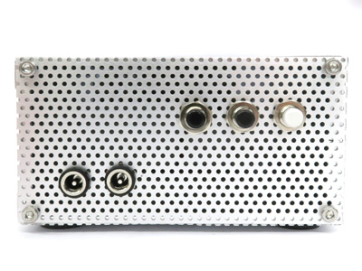 VFDのフィラメント電流制限抵抗が以外と熱くなるので排熱も考えて背面パネルは通常のアルミ板ではなくパンチングメタルの目の細かものものにしました。本当に効果があるのかどうかはちょっと疑問ではありますが、完全密閉のパネルよりは安心でしょう。