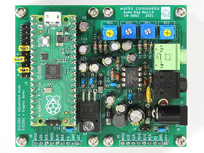 組立資料に従いRaspberry Pi picoのファームウェアを書込み、ジャンパーピンを設定してオフセット調整を行いオーディオデータを入れて動作確認しました。あとはどう筐体に収めるかが思案のしどころです。