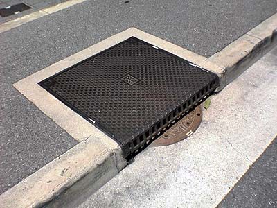 この道路は一方通行なのですが、この先には道の真ん中にいつも渋滞で上に車が覆いかぶさっていて緊急時にはあまりお役に立ちそうも無い気のする消火栓用の四角いマンホールもあり、この道路は整備時にかなり無理矢理な事をしたのではないかと推察されます。