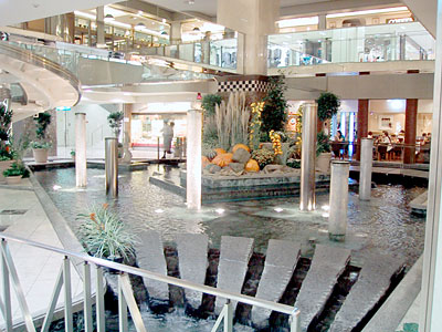 これ、どこかの商業施設の1Fもしくは、駅のコンコースの一角だといわれると納得するかもしれませんが、実際は地下2Fの光景なのです。ポンプで水を循環させ高低差をつけて流す苦労も大変だと思います。