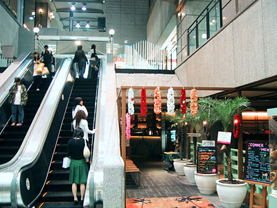 川のある街、滝のある街としてオープンした阪急三番街ですが、滝のほうはさすがに経費がかかりすぎたせいか、近年になくなり、いまは装飾を施されており、知らない世代は、ここが滝で水が流れ落ちていたなど言っても信じないでしょう。
