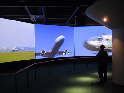 新幹線等はこのスクリーンの端から端まで走り抜け、なかなか迫力がありました。しかし、左右に広すぎる事から全部のスクリーンを一度に見渡せないのがちょっと残念です。