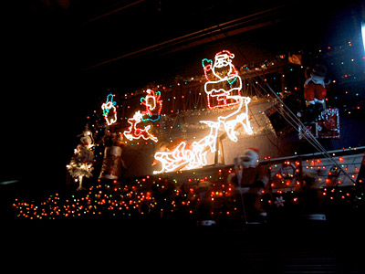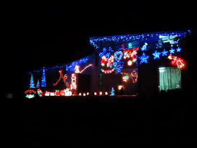 出ました!もう近所どころかこの道を通る人にとっては、有名な家かもしれません。道に面した部分は全て飾りつけされています。もう、他に何を飾るか。あとは屋根だけかなと思えるぐらいです。