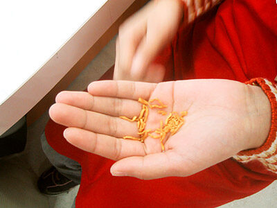 先ほどのひげみたいにはみ出した麺ですが、これは袋に入れずに作った人の手のひらに移してもらえます。